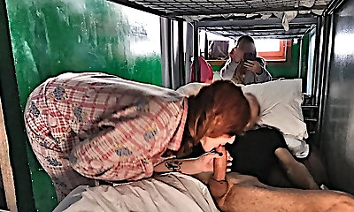 HOSTEL BLOWJOB: the big boobs slut wakes me up with a good bj and deepthroats all my spunk