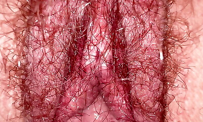 Hairy Bush macro close-up with creampie running in rivulets, Inexperienced Milf Wife on homemade sextape with the most beautiful hairy bush