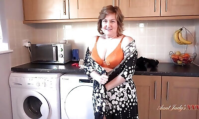 AuntJudysXXX - Your 58yo Curvy Mature Housewife Mrs. Kugar Sucks Your Manstick in the Laundry Apartment (POV)